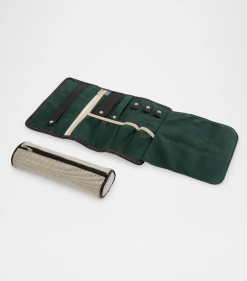 Keep looking on point while on the go! Designed to carry for a week's worth of jewelry (or a month!) This travel jewelry roll features an assortment of pockets, ring bars, earring panel and an overall protective panel. It is a great complement to your cosmetic bags and can easily fit in a tote or carry-on.