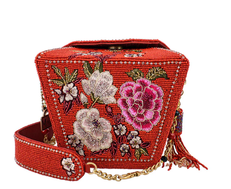 Spice up your style with this takeout-box inspired handbag! Covered in vibrant beads and blooming florals, it's the perfect pick when your outfit needs a little extra flavor.