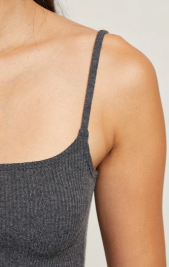 a little '90s throwback, made for now. the sophie ribbed cami features delicate spaghetti straps and a fitted silhouette in our signature sweater rib. she’s soft, wearable, and perfectly minimal.
