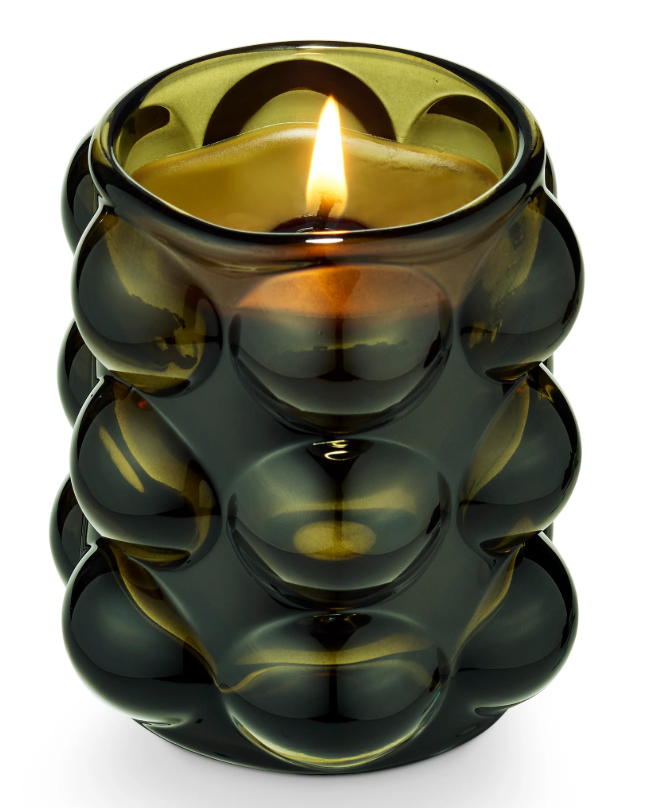 The glace glass has a bubbled texture reminiscent of the ever charming vintage lucite grape clusters.